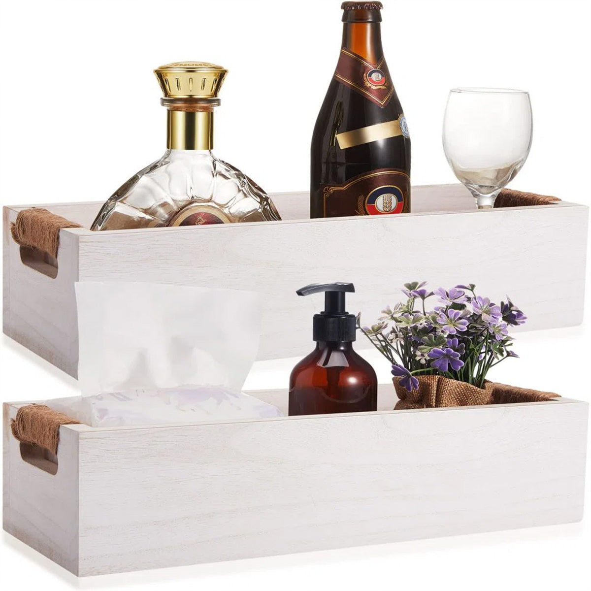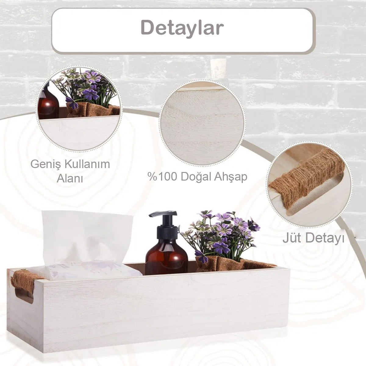 Ev dekorasyonunuza rustik bir dokunuş katarken dağınıklığı ortadan kaldırmak için tasarlanmış bu çok amaçlı ahşap kutu ile tanışın. Doğal ahşap ve jüt detaylarının birleşimiyle üretilen bu kutu, banyo, mutfak, ofis veya yaşam alanınızdaki her türlü eşyayı düzenlemek için idealdir.